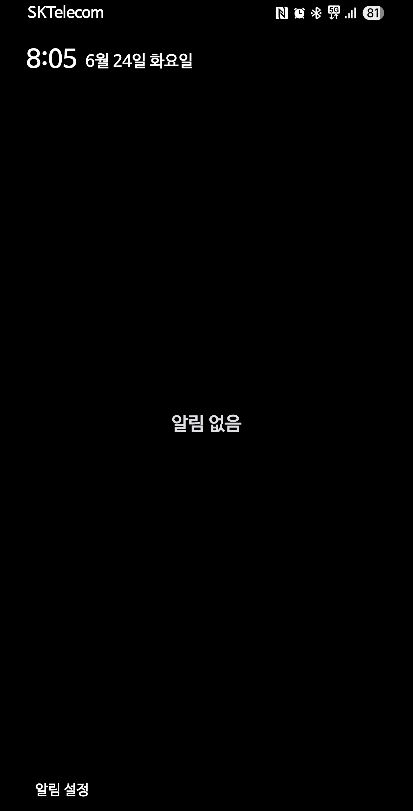 알림창과 빠른설정창을 한번에 보는걸로 바뀐다.
