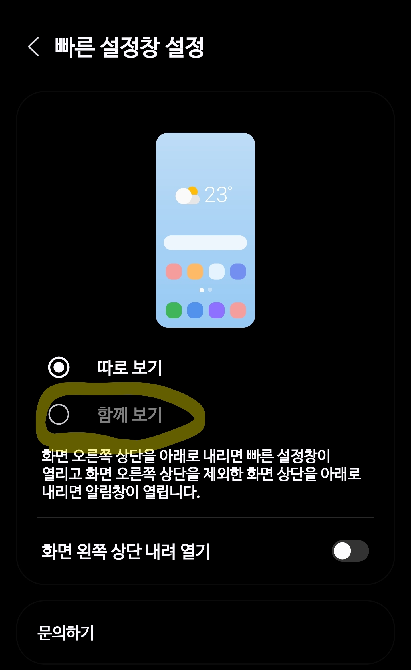 빠른설정창 설정에 들어가서 기존에 따로 보기로 되어 있던거를 함께보기로 설정하면