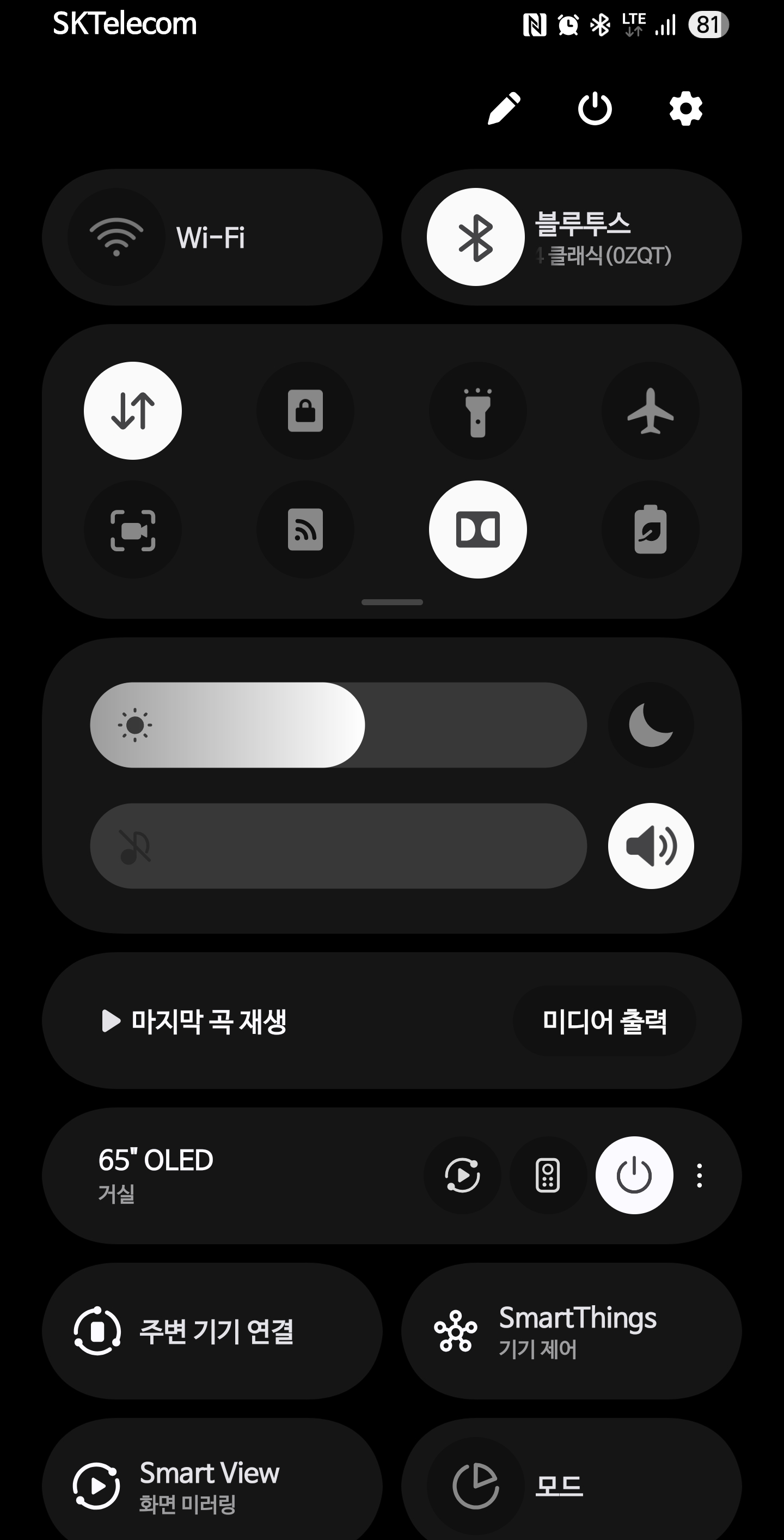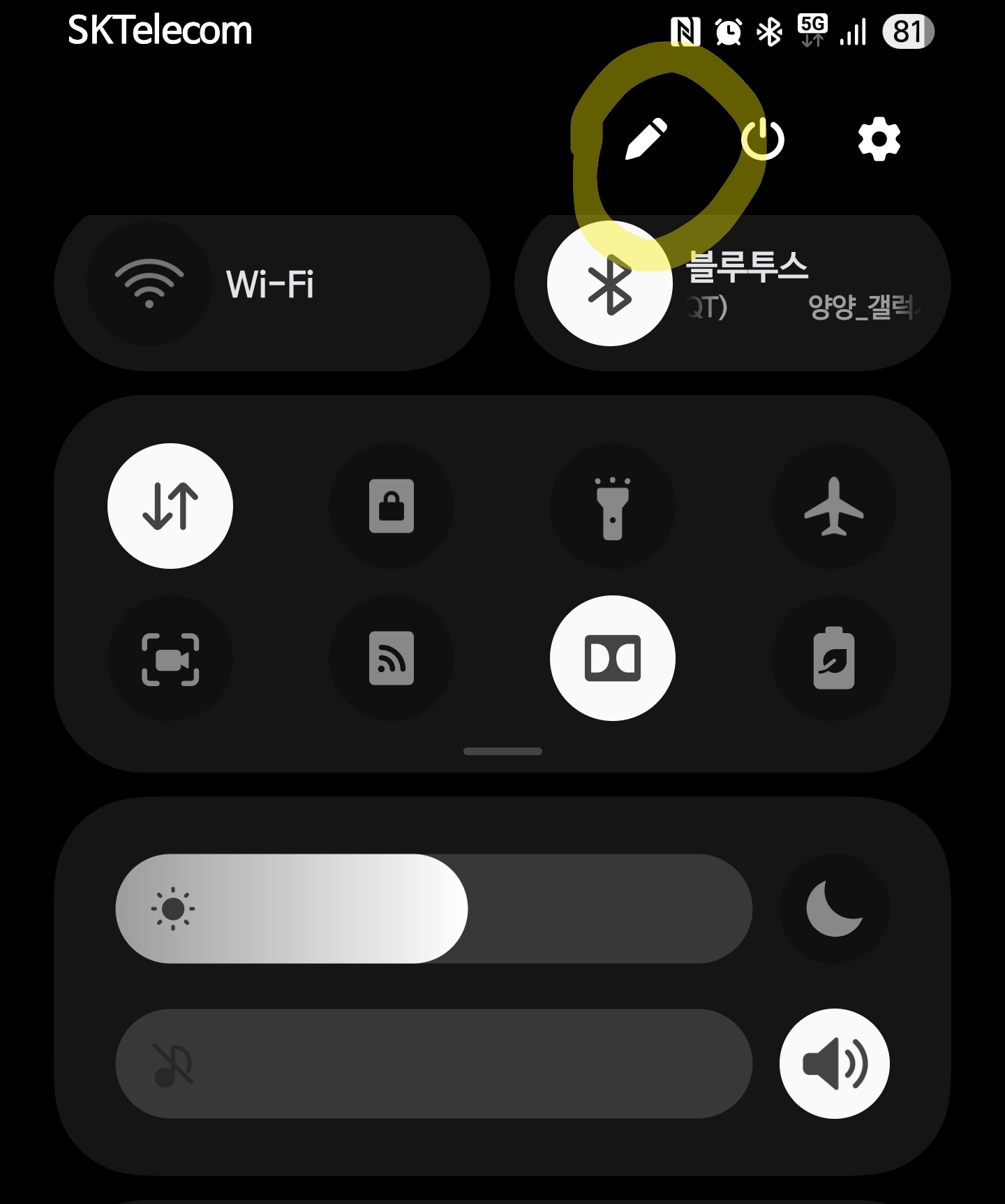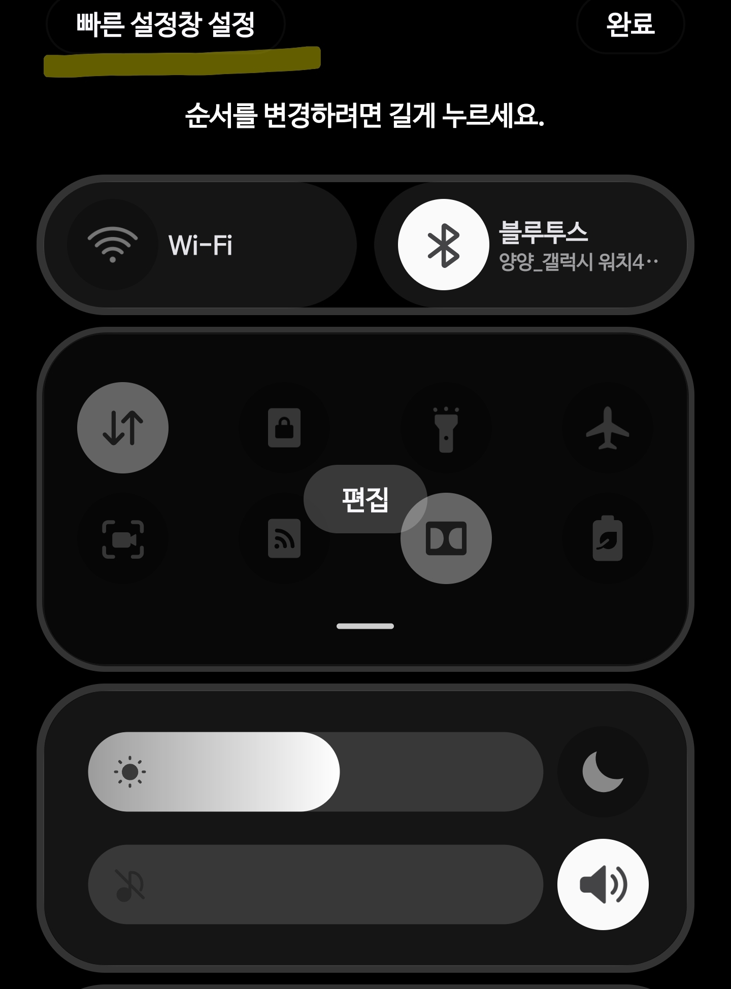 빠른설정창을 내린다음 연필모양을 클릭한다