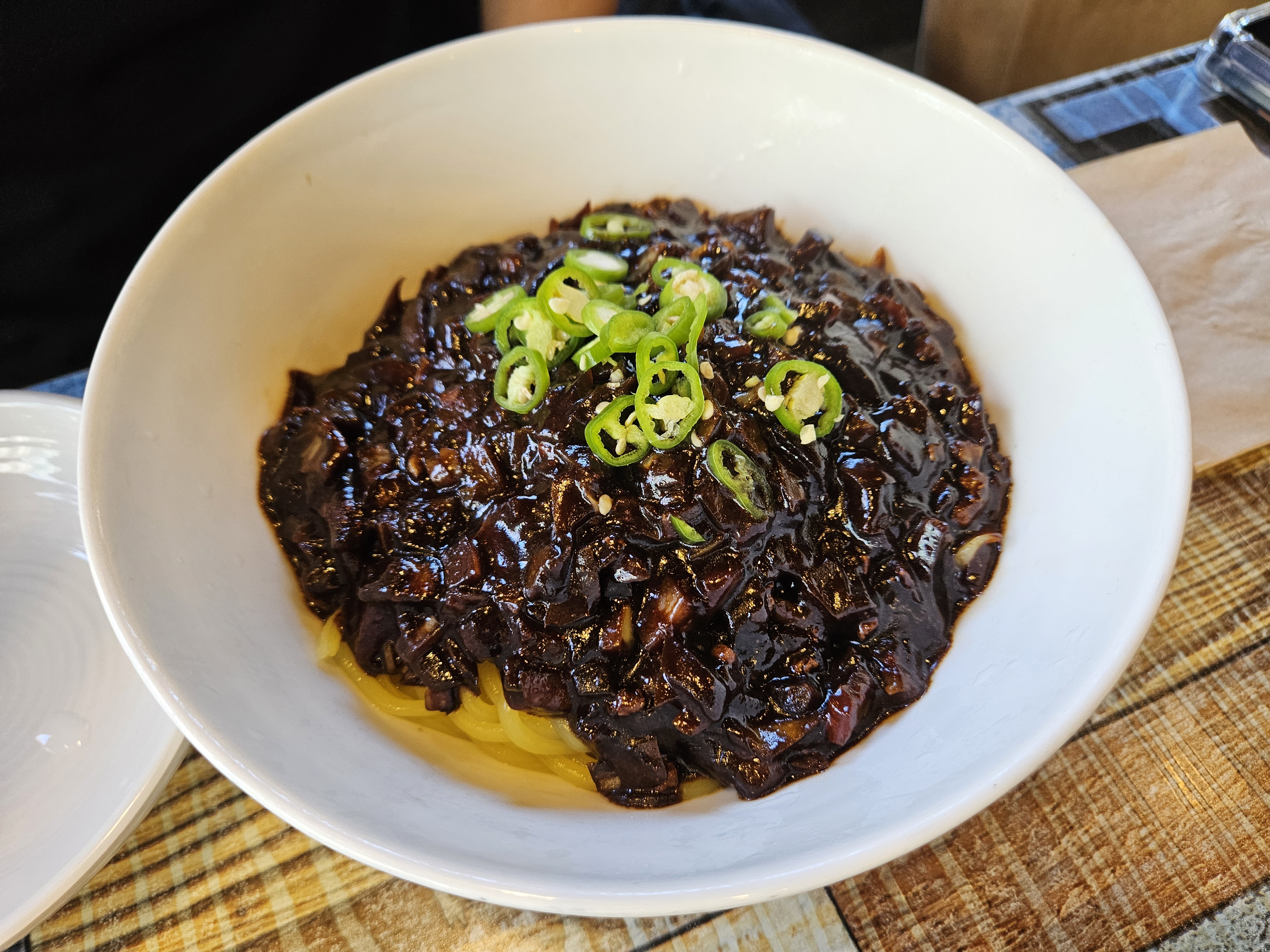 청양고추가 들어가서 면을 비볐을 때 칼칼한 맛이 느껴집니다. 매운거 좋아하는 분들은 이 짜장면을 추천해요.