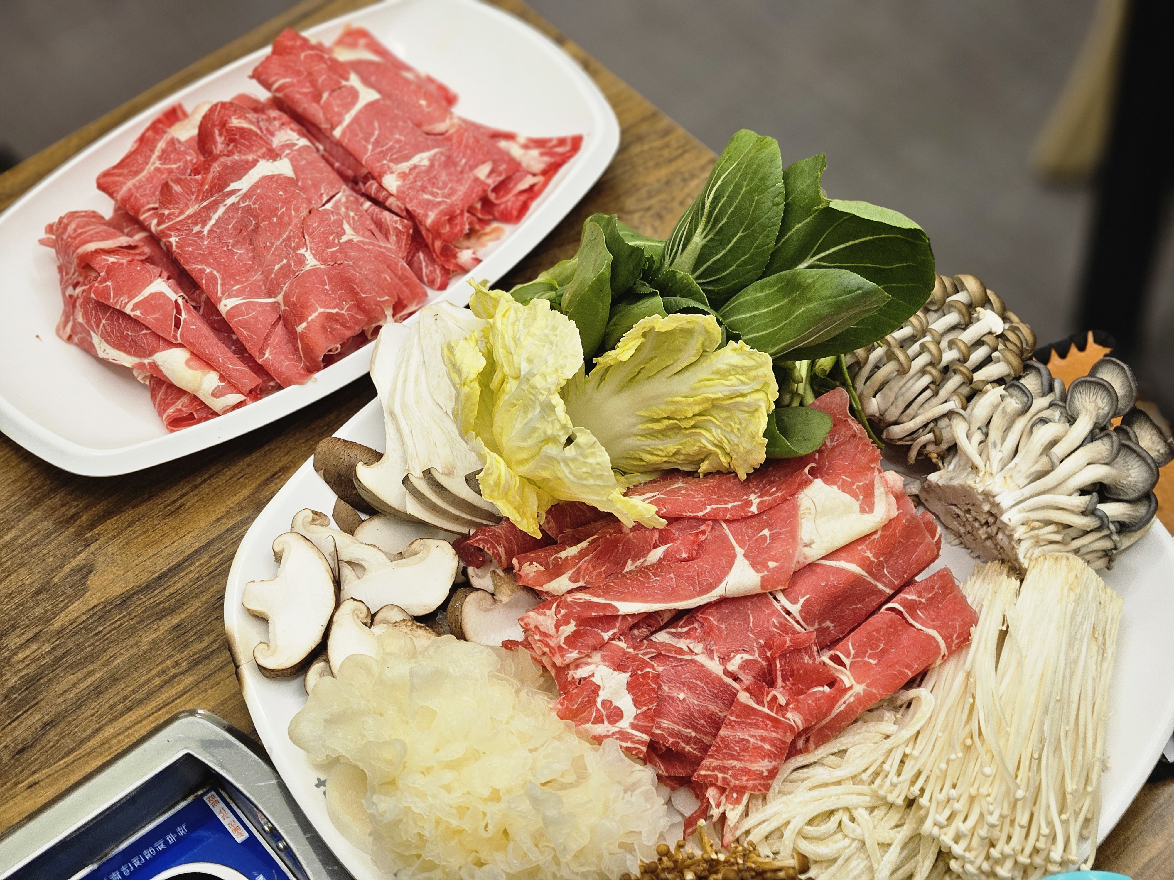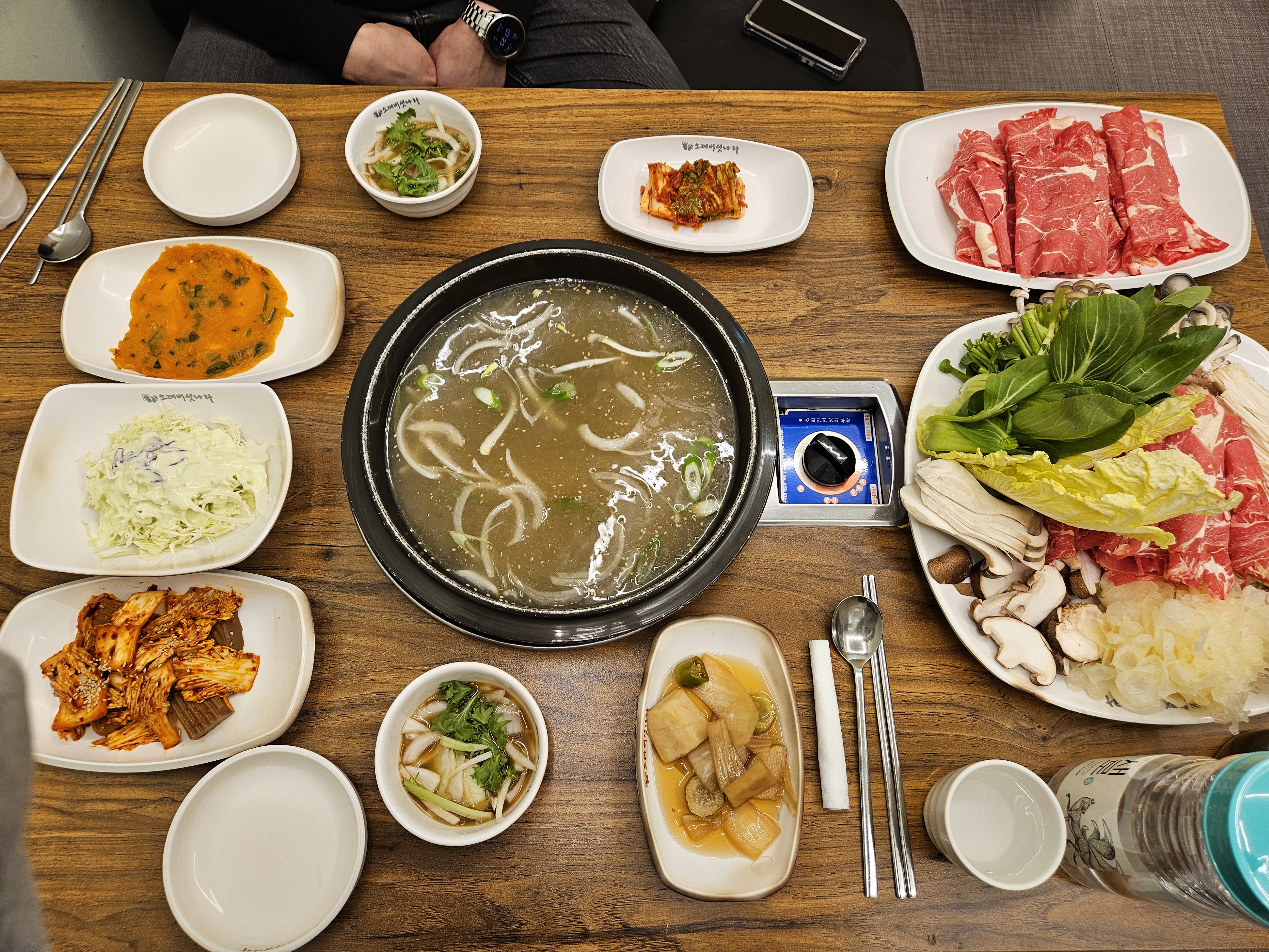 위에 고기 접시 따로 있는 건 혹시나 샤브샤브 소자 고기양이 부족할까 봐