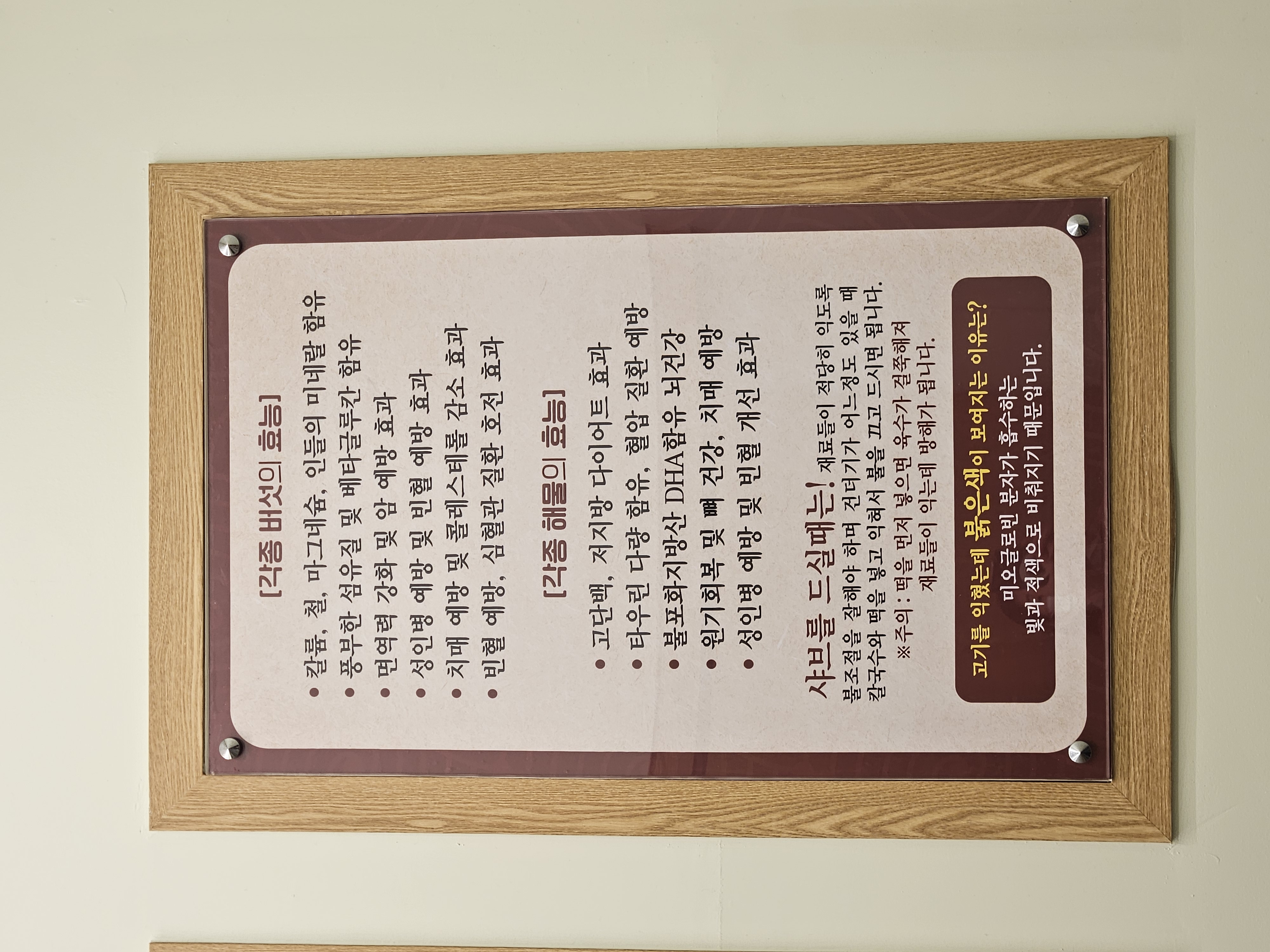 벽면에 버섯과 해산물의 효능이 적혀 있었다.