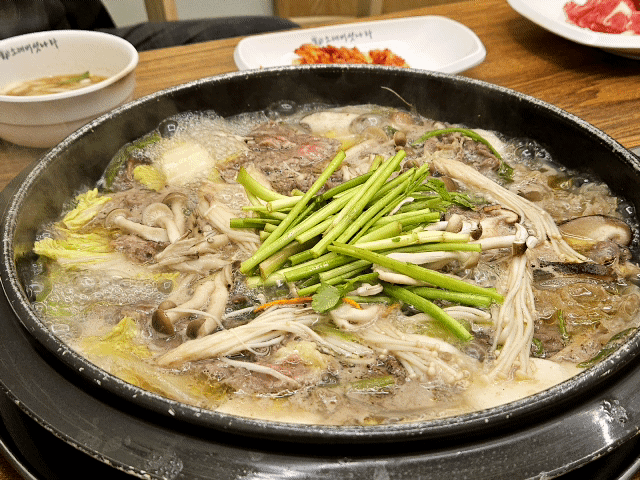심지어 소자 2인 나온 버섯, 채소, 고기 기본 양 자체가 푸짐해서 배부르게 먹을 수 있다.