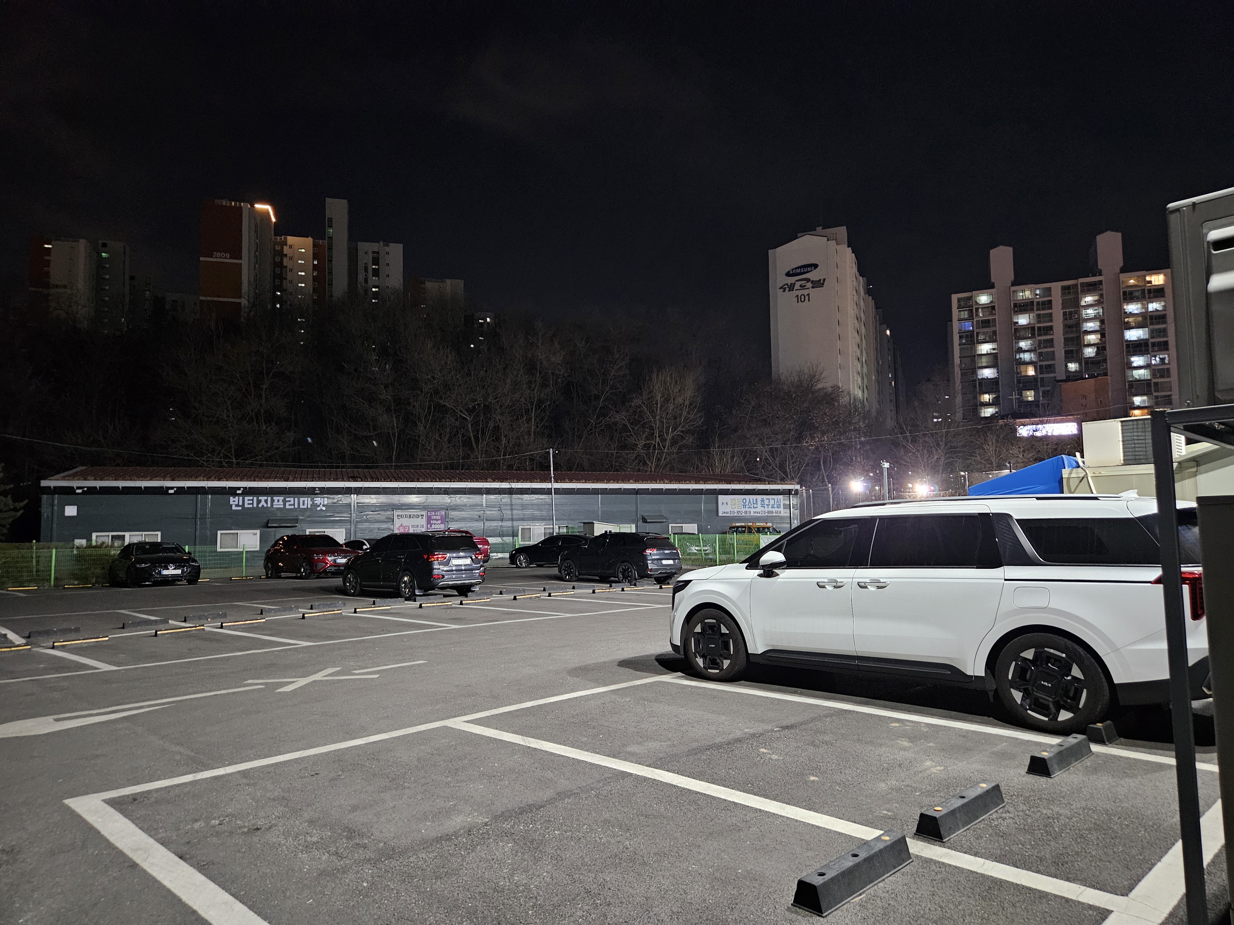 가게 앞에도 주차장이 있고 건물 뒤에도 넓은 주차장이 있어서